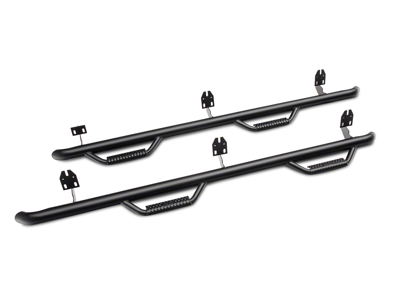 Side Step Bars by Rough Country. Enter and exit your vehicle like a true champion with the Rough Country Wheel to Wheel Nerf Side Step Bars - Black. They deliver a wheel-to-wheel stepping surface using an 89 inch tubular and drop step design, constructed using .084 wall corrosion-resistant, 1-piece tubing.