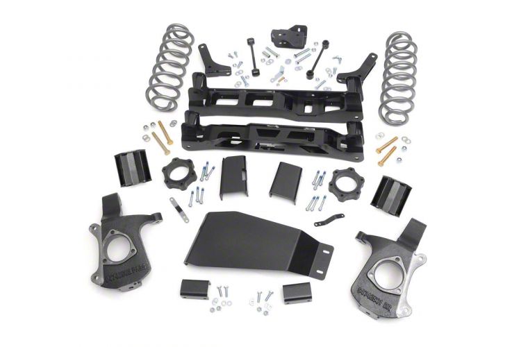 All-Inclusive. Made for the 2WD and 4WD GMC Yukon without Auto Ride, this Rough Country Suspension Lift Kit is an all-inclusive kit for a complete 5-inch of vehicle lift. Coming with knuckles, cross members, coil springs, strut spacers, sway-bar links, shock extensions, brake line brackets, a skid plate, differential drop brackets, and a track bar bracket, this kit also includes grade 8 hardware for a professional lift.