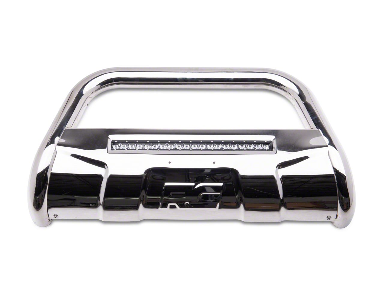Description. COMMAND THE DARK with Rough Country's new LED Bull Bar! This durable 3-inch thick tubular steel bull bar provides unbeatable protection for the front side of your vehicle, with an integrated Rough Country 20-inch Chrome-Series Single-Row LED Light bar to provide ample lighting for the trail ahead.This easy-to-install bull bar features a 100% bolt-on installation process, giving you a simple way to add this eye-catching upgrade that provides protection from hazards on and off-road. Each LED Bull Bar includes a removable license plate relocation bracket and corrosion-resistant black powder coat to ensure a long-lifespan for years to come.Rough Country's Single-Row 20-inch Chrome-Series LED light bar features Cree LEDs outputting a staggering 7200 Lumens and 90 watts of lighting power. Rough Country's all-weather LED lights feature a durable, die-cast aluminum housing and include a premium, waterproof, flat-wound, braided wiring harness with toggle switch and in-line fuse.