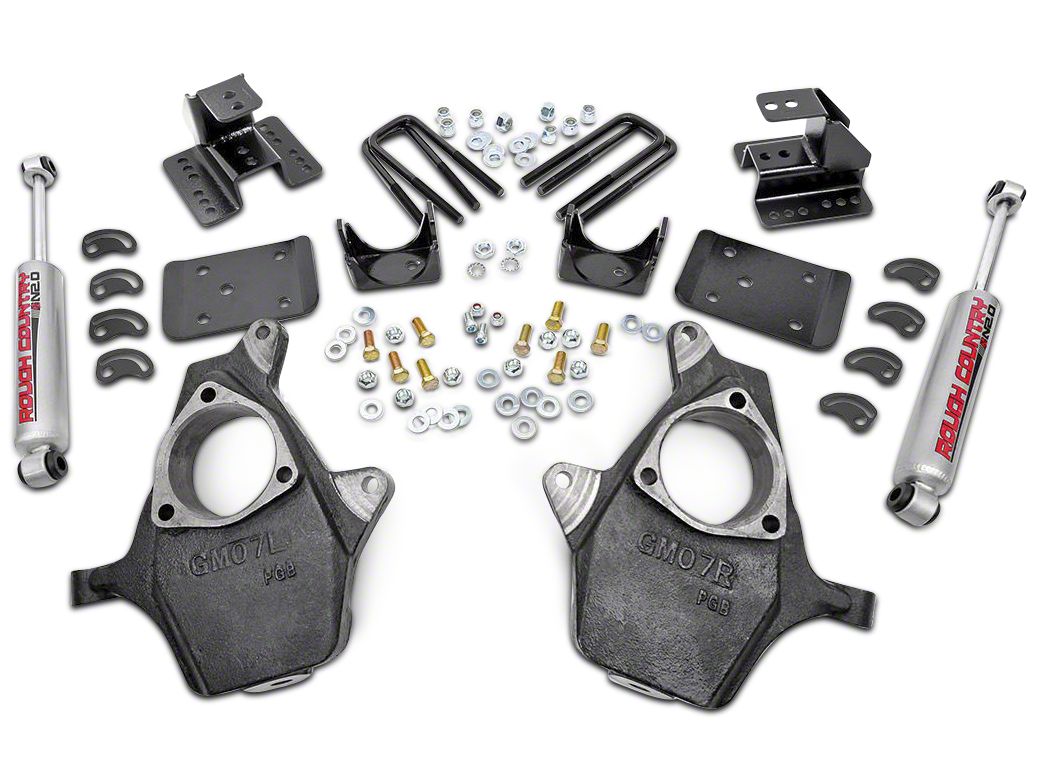 Rides Like the Day You Bought It. Lower your Truck while maintaining a smooth ride with a Rough Country Lowering Kit. After being fitted with a lowering kit from Rough Country, your Silverado will be able to handle whatever the road throws at it thanks to its enduring and world-beating construction. This kit provides a 2" of drop in the front and a 4" in the rear.