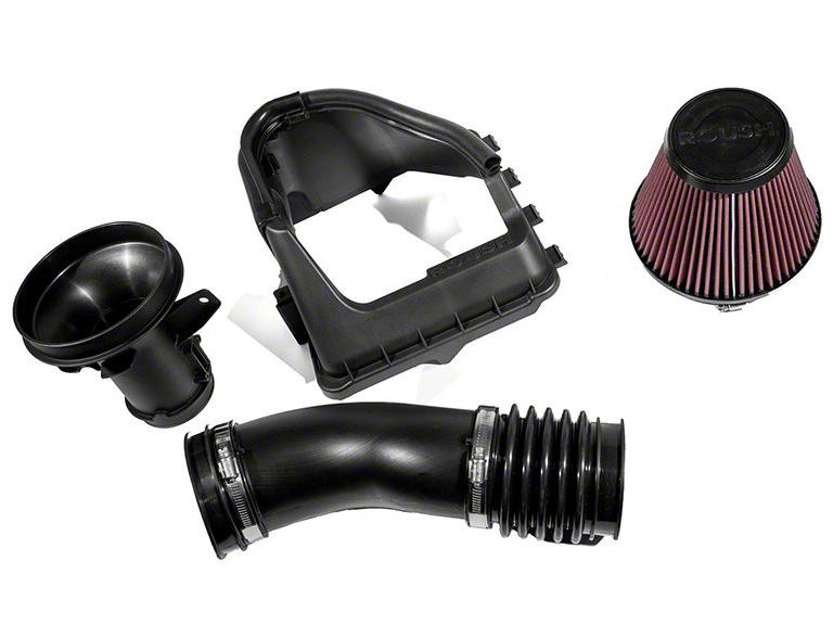 Built for High Performance. Robust and lightweight, the Roush Performance Cold Air Intake is made in the USA with pride and topnotch craftsmanship. The heat shield and intake tube are both fine quality injection-molded plastic with a textured black surface. The filter is made in contrasting scarlet. The component is made with increased airflow in mind, with a large filter and an unrestricted air intake tube that features smoothly flowing bends.
