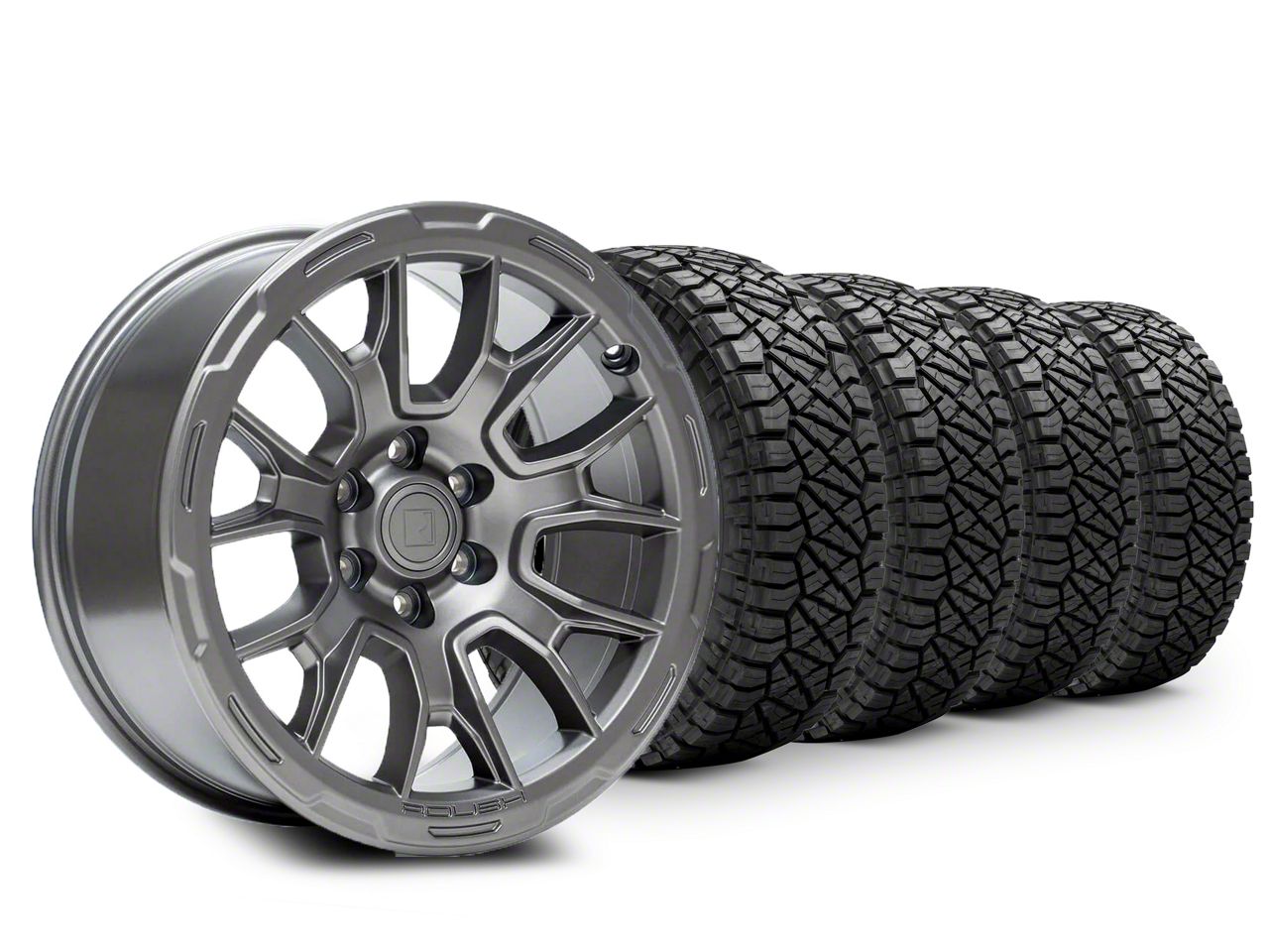 Mounted and Balanced Wheel and Tire Kit. This wheel and tire combo kit features (4) 20x9 Roush Iridium Gray 6-Lug Wheels and (4) NITTO All-Terrain Recon Grappler A/T 32" - 275/55R20 tires that have been put together into an easy to buy kit that arrives to your door already mounted and balanced ready to be installed on your vehicle.
