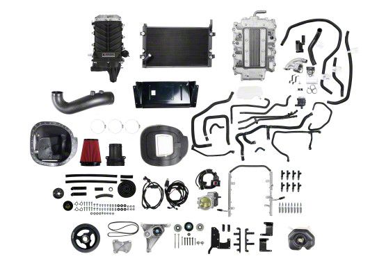 Our team of Roush engineers performed rigorous testing on this new application and developed an all-new dual alternator thermostat housing design that flows 20% more through the radiator at peak power output than the Ford design. An optimized billet aluminum viscous crankshaft damper to improve the durability and longevity of the supercharged 5.0L V8 engine. During our rigorous development and testing process, we determined it was necessary to add a unique Roush damper to the kit to reduce the increased torsional inputs needed to handle the increased power level.