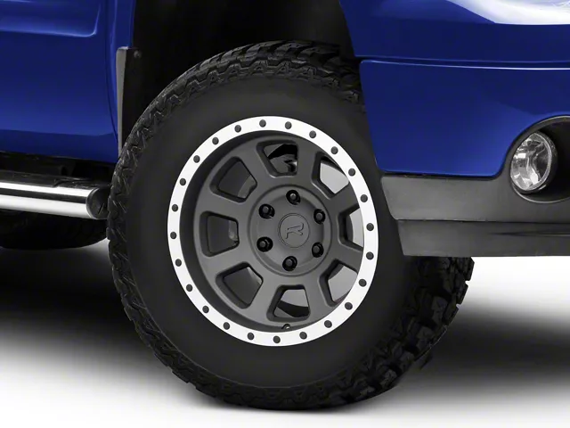 Rovos Wheels Kalahari Charcoal with Machined Lip 6-Lug Wheel; 17x9; -6mm Offset exudes a sleek aesthetic appeal, complementing a range of vehicle styles. Its dark stainless finish emanates sophistication, while the brand reputation of Rovos Wheels ensures robustness. This wheel seamlessly merges elegance with durability.