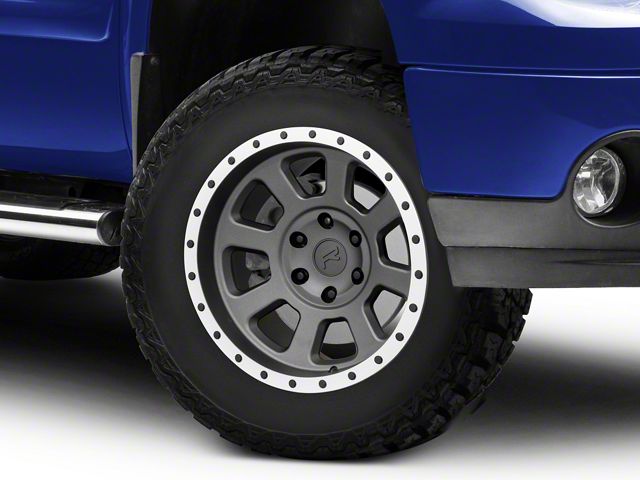 Rovos Wheels Kalahari Charcoal with Machined Lip 6-Lug Wheel; 18x9; -6mm Offset exudes sophistication with its finish, offering a sleek and modern appeal to any vehicle it adorns. The design is meticulously crafted to enhance the aesthetic of your vehicle, giving it a distinctive and upscale look. Perfect for those seeking to elevate their vehicle's style, this wheel blends seamlessly with both contemporary and classic vehicle designs, making it a versatile choice for a wide range of vehicles. Its robust construction ensures durability, making it a reliable choice for drivers who value both style and quality.