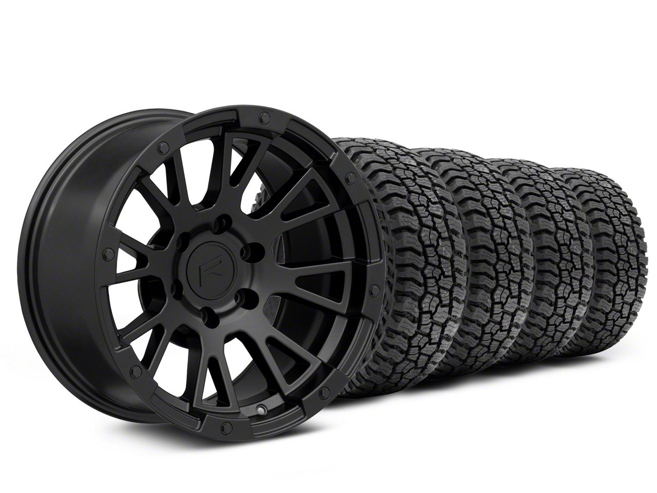 Mounted and Balanced Wheel and Tire Kit. This wheel and tire combo kit features (4) 17x9 Rovos Wheels Karoo Matte Black 6-Lug Wheels and (4) Mickey Thompson All-Terrain Baja Boss A/T 33" - 285/70R17 tires that have been put together into an easy to buy kit that arrives to your door already mounted and balanced ready to be installed on your vehicle.