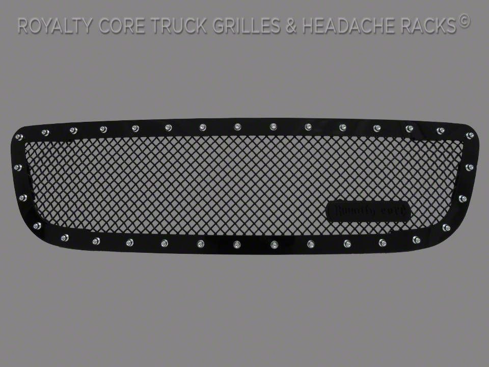 Classic Design. This line of grilles from Royalty Core features a 10.0 Power, Mesh Diamond Crimp Design. This is a popular tight weave, favored by many for its classic look, superior strength, and accelerated airflow. The grille comes with a black two-tone RC1 badge that you can remove and/or replace with a different logo. Finished in a classic gloss black, the grille looks clean and sharp whether on the trail or in the garage.