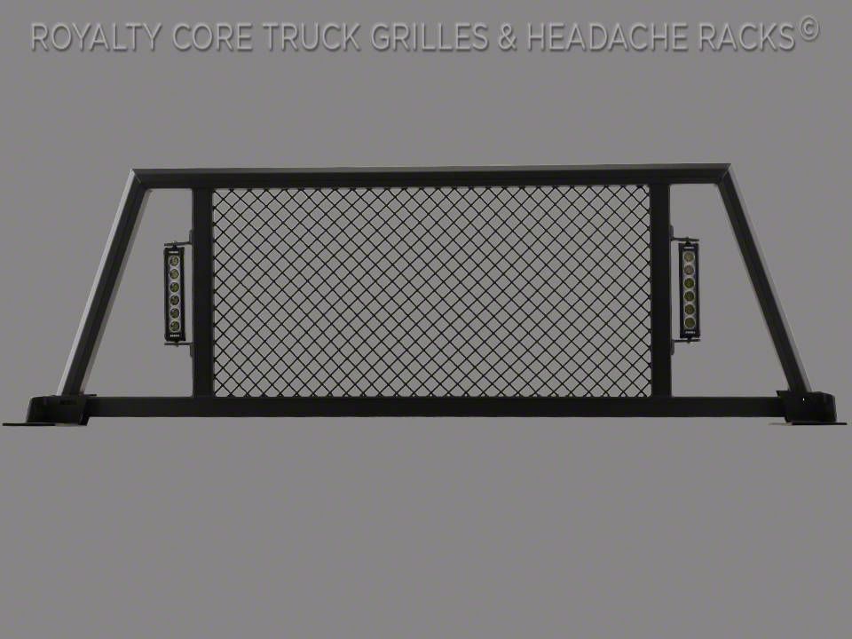 Royalty Core's RC88X Ground-Breaking Headache Racks replicate the image of their incredible custom grilles for the ultimate appearance. Royalty Core's T6 Billet Aluminum Mesh diamond design enables maximum rearview visibility and keeps your cab cooler from sun rays. The RC88 Headache Rack is essential for the final line of defense against cargo crashing through your truck's back window with emergency braking, collision, and bumps.