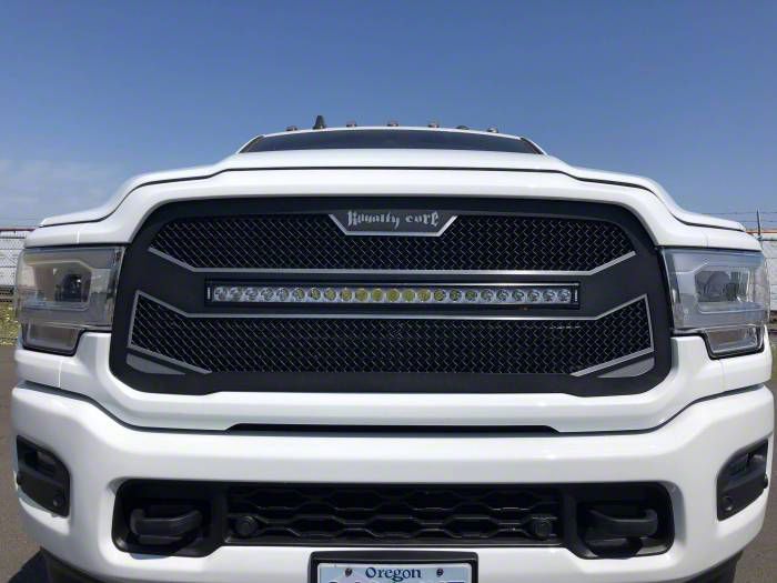 Application. The Royalty Core RC4X Layered Upper Replacement Grille with 30-Inch Curved LED Light Bar; Satin Black fits 2019-2024 RAM 3500 with Forward Facing Camera models.