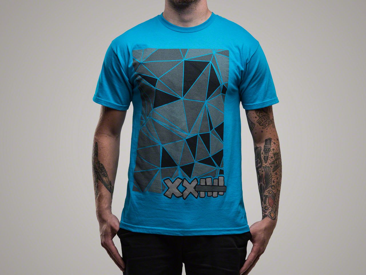 Trademarked XX5 Logo. You'll need a Vaughn Gittin Jr. shirt to match all the RTR parts installed in your Ford F-150. This RTR VGJR Blue Triangles T-Shirt features a black and gray triangle graphic design on the front and Gittin Jr.'s signature XX5 logo toward the bottom for a truly unique style. The XX5 logo is located on the back lower corner that would make this the ultimate shirt to wear at shows or races.