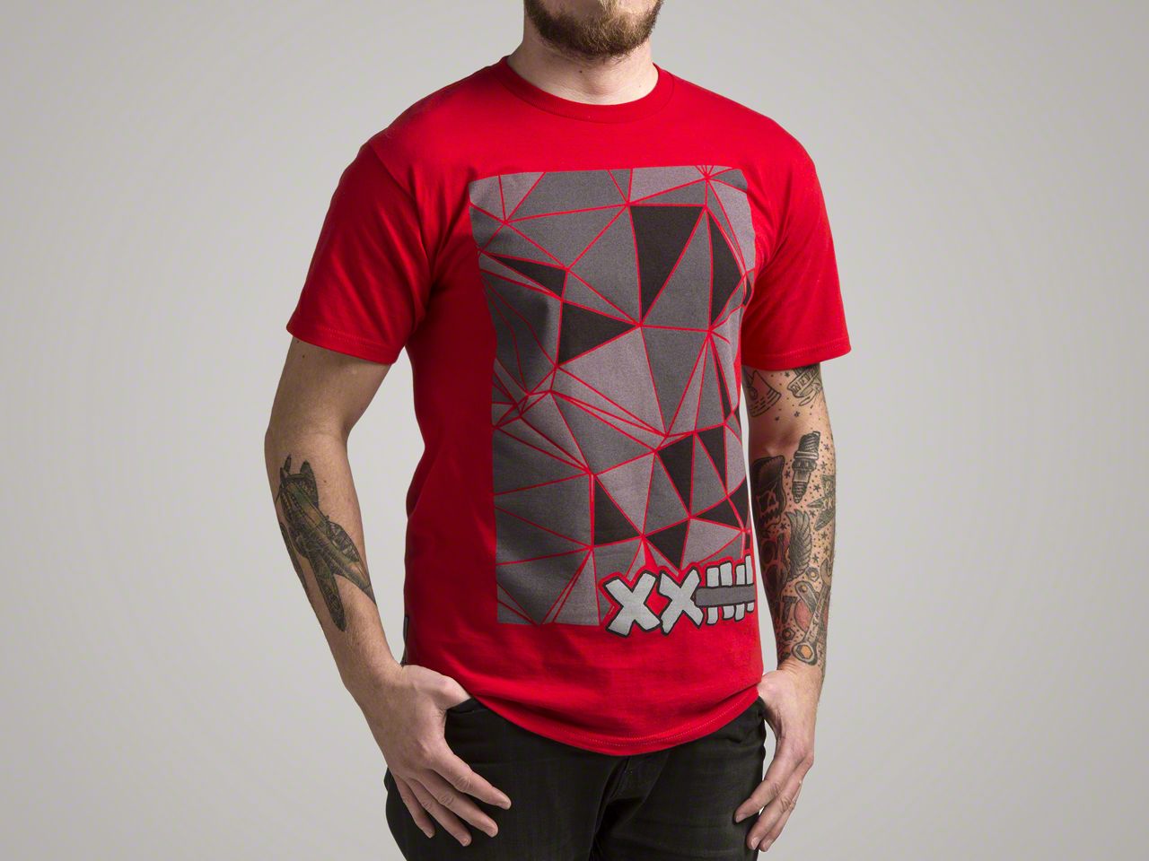 Available in Men's Sizes. Available in a variety of men's sizes, this Red VGJR XX5 Triangle Tee is designed with an athletic fit. Please choose from the ordering options above. For a looser fit, order one size up.