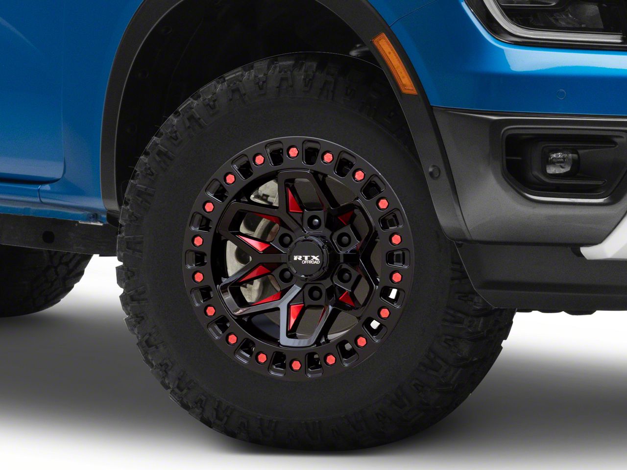 Application. This RTX Offroad Wheels wheel, Zion Black Milled Red 6-Lug Wheel; 17x9; 0mm Offset, features a backspace of 5 Inch, 127mm and a bolt pattern of 6 x 139.7mm . These specifications help ensure proper wheel alignment and enhance driving stability. It is designed to fit the 2024-2026 Ranger models. Sold individually.