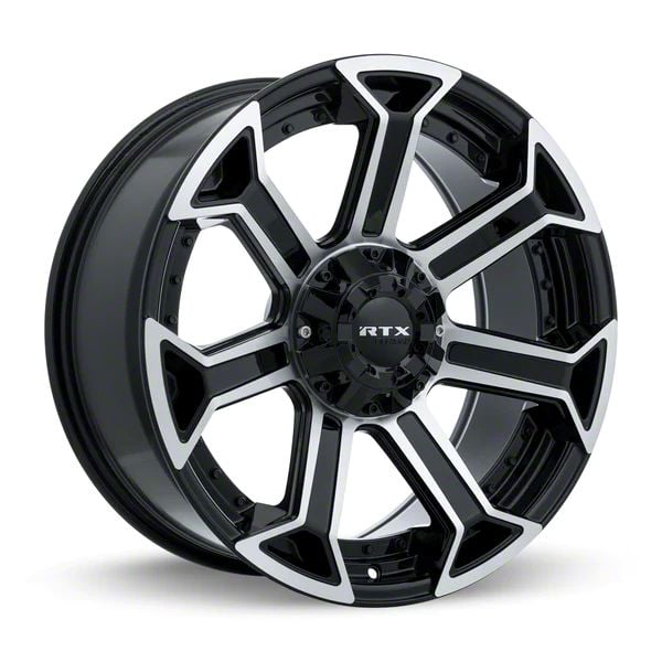RTX Offroad Wheels Peak Gloss Black Machined 8-Lug Wheel; 18x9; 18mm Offset - Enhance your vehicle's style with the RTX Offroad Wheels wheel. This wheel's distinctive design and finish complement your vehicle's aesthetics, making a bold statement. It's crafted to accentuate the unique character of your car, emphasizing a premium and robust appeal.