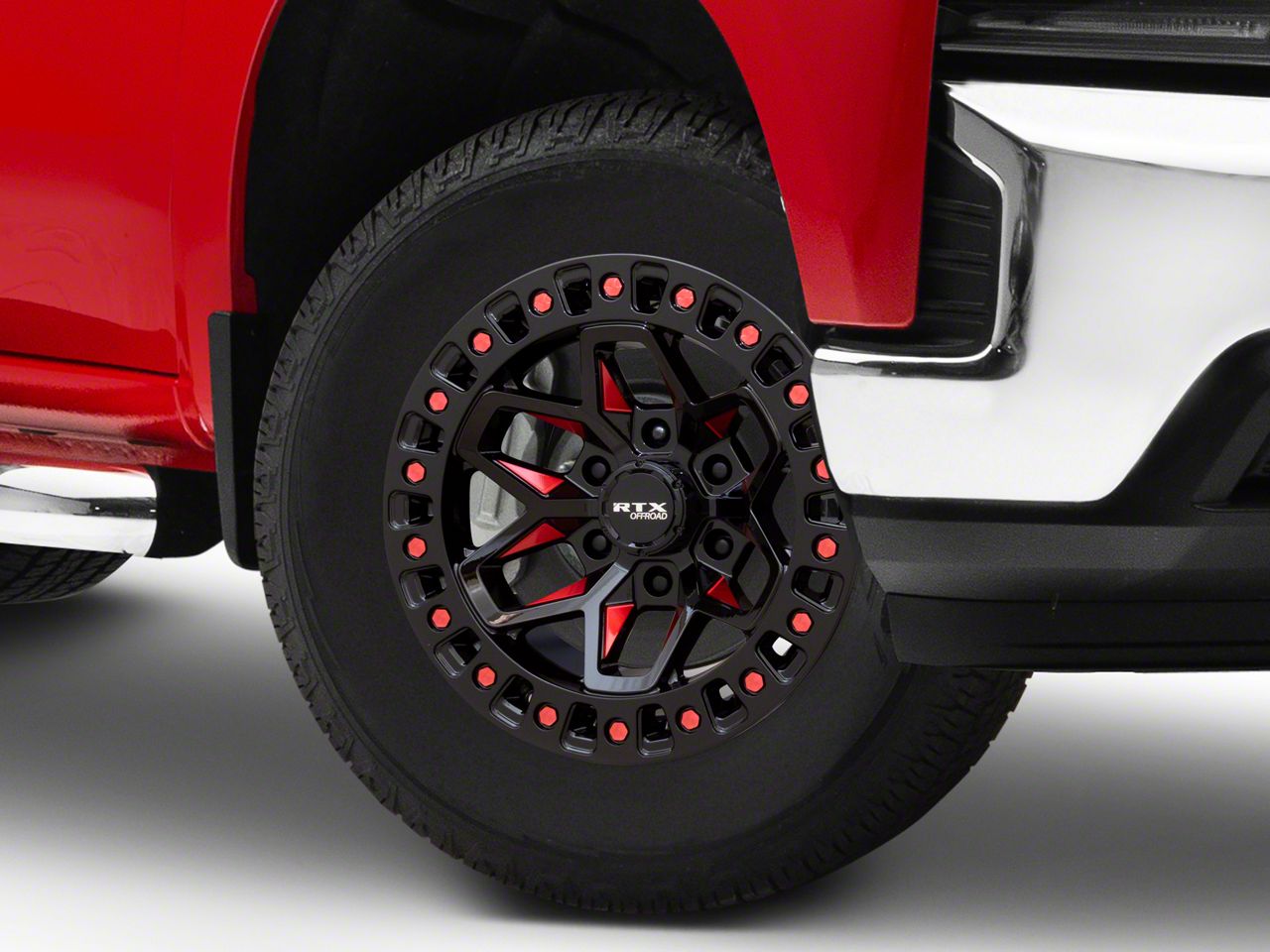 Application. This RTX Offroad Wheels Zion Black Milled Red 6-Lug Wheel; 18x9; 0mm Offset with a backspace of 5 Inch, 127mm; and bolt pattern of 6 x 139.7mm (6 x 5.5-Inch), contributes to alignment, driving stability, and ensures a perfect fit with the vehicle model. Designed to fit the 2019-2026 Silverado 1500. Sold individually.