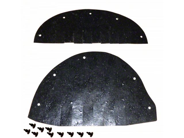 Construction and Appearance. Each shield is die-cut from original-style masticated rubber, providing the same durability and flexibility as OEM parts. Made in the USA, they are tailored for a precise fit inside the front inner fenders, ensuring long-lasting protection while maintaining a factory appearance.