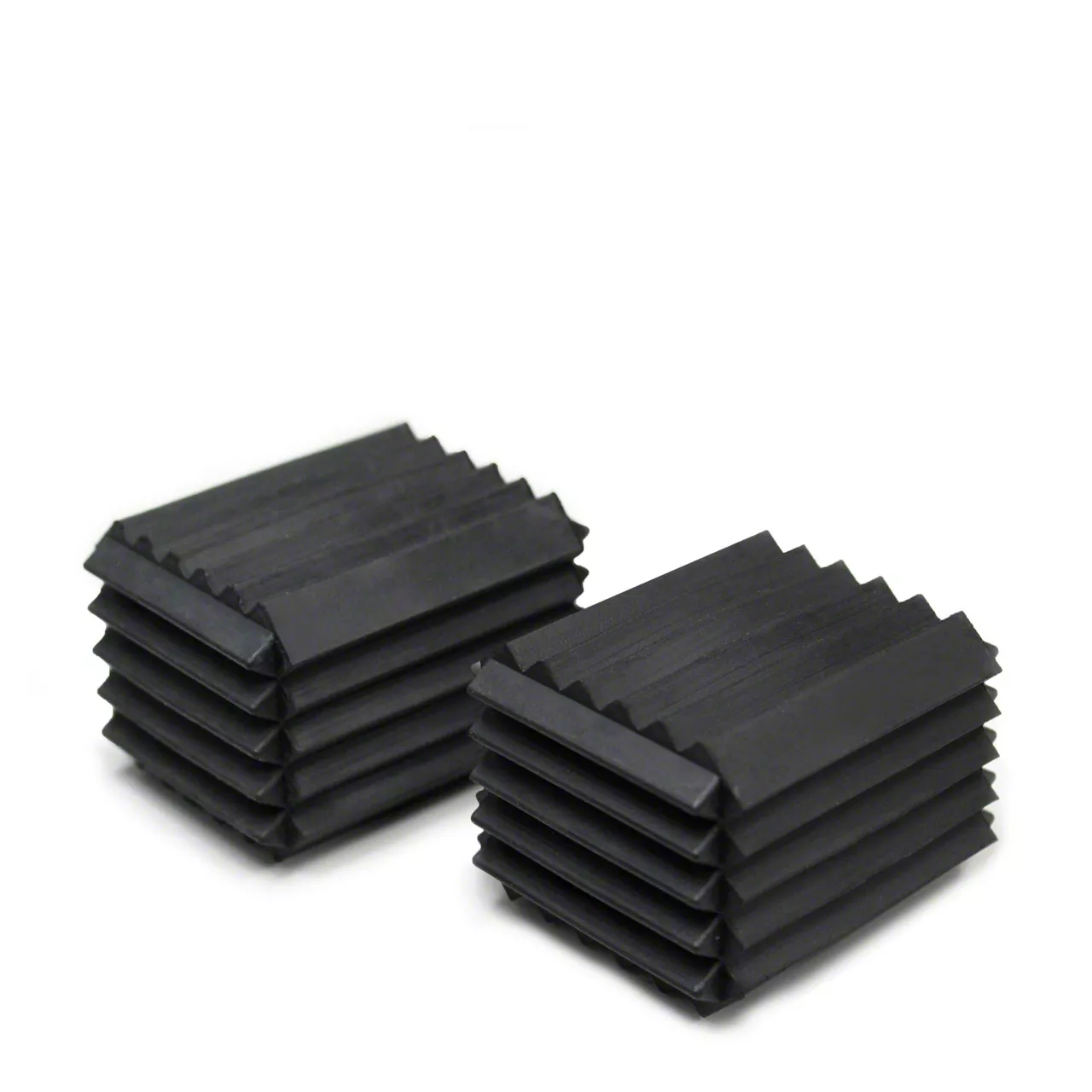 Long-Lasting Strength. Made from Shore A65-certified natural rubber, these boosters are sold as a pair and come in 2-inch x 1.50-inch x 1.25-inch sizes. And with their high compression level and tensile strength, you can rest assured that they are designed for commercial use and will provide lasting durability. Moreover, installation is a breeze with these rubber blocks. No drilling is required - simply slip the boosters on and go!