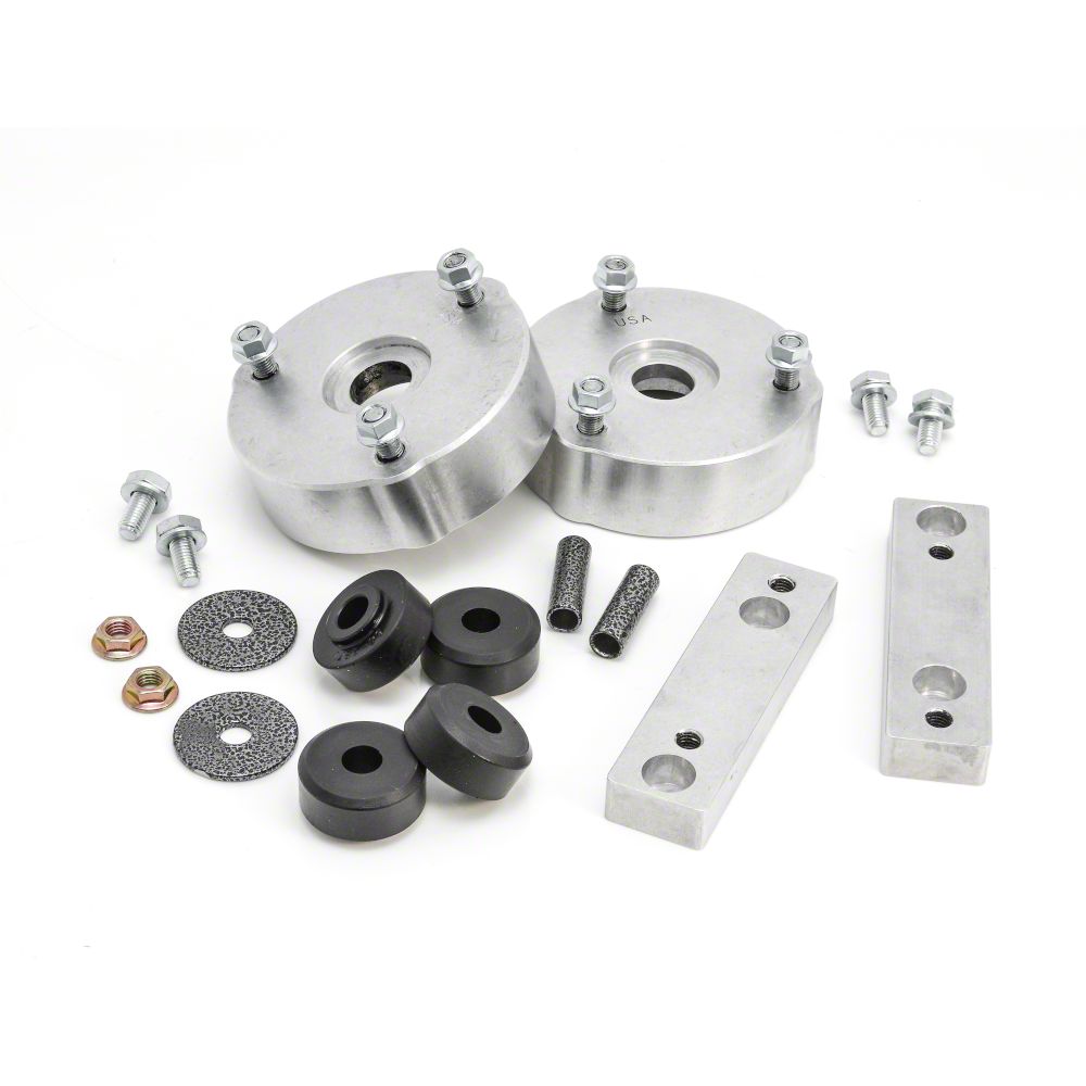 The 9-104 Leveling Kit for the 2015-2021 Chevrolet Colorado and GMC Canyon provides 2'' of front leveling lift, eliminating the 1.5" factory rake. This kit installs with no cutting or modifications to the suspension. The Rugged Offroad 9-104 leveling kit is a strut hat replacement spacer will provide the necessary lift for a level stance without compromising the factory geometry or limiting suspension. Aligns perfectly after installation and will allow for an increased tire size and no rubbing up to 265/65-17. 9-104 2" Leveling kit for 2015-2021 Chevrolet Colorado and GMC Canyon is made from CNC machined 6061-T6 military aircraft grade billet Aluminum. Includes new hardware.
