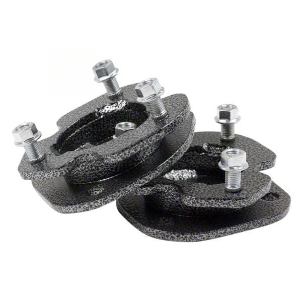 Achieve Perfect Leveling. The Rugged Off Road 2-Inch Front Leveling Kit is designed to level the front of your vehicle by a true 2 inches, ensuring a balanced and aggressive stance. This kit is ideal for those looking to maintain factory ride quality while enhancing the vehicle's appearance and performance.