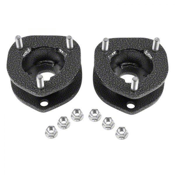 Construction and Appearance. This front leveling kit is laser-cut from high-quality steel, ensuring precision and durability. It features a powder coat finish for superior corrosion resistance and a sleek look that complements any vehicle exterior. The robust construction guarantees long-lasting performance and reliability.