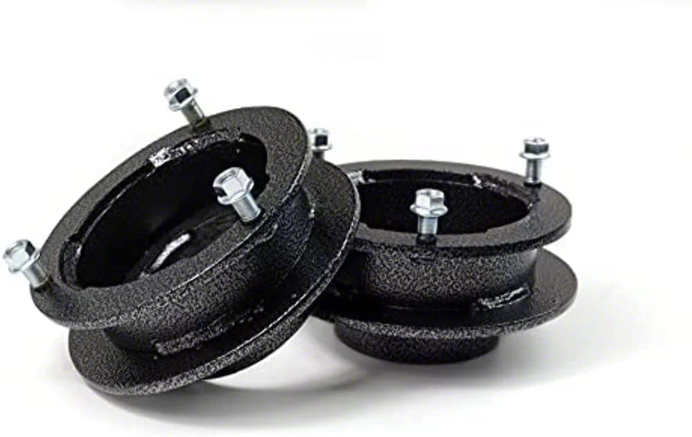 Toyota Tacoma owners, we know you take care of your truck and demand only the best quality aftermarket parts. When it comes to leveling, only Rugged Off Road™ offers the best value leveling kit to lift the front of your 1995-2004 Toyota Tacoma 6-lug the right way! Rugged Off Road's 2.0" strut suspension extension will allow you to have a level stance and increased wheel and tire clearance. Our super strong at a super value 2.0" Leveling Kit is exactly what you have been looking for! This leveling kit will lift the front of your 1995-2004 Toyota Tacoma 6-lug enough to clear 32" tall tires. Works with both 2WD and 4WD trucks. 4WD Tundra trucks will require the use of the Rugged Off Road™ differential drop bracket kit (sold separately). The Rugged Off Road™ 7-102 2.0" 1995-2004 Toyota Tacoma 6-lug leveling kit is the best constructed, best value leveling kit on the market. Our high-quality hammertone powdercoated laser cut steel strut suspension spacers offer a full 2.0" of front lift and the ability to install up to larger size wheels and tires you want! Get the job done safely without having to break the bank. No cutting. No modifying. Easy Installation. Installs in less than 2 hours. Rear block/spacer may be required for a level stance on some applications.