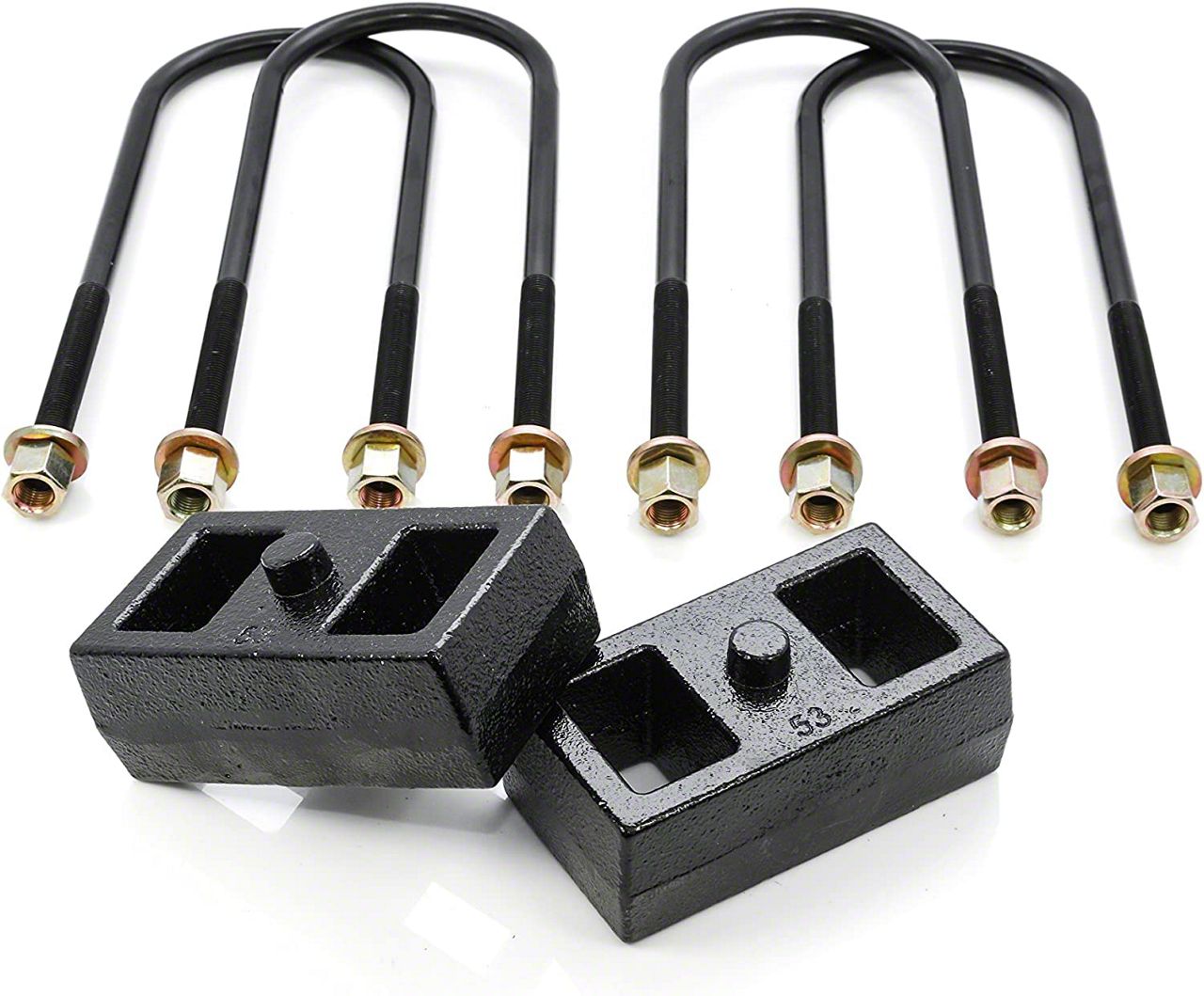 Installation. The Rugged Off Road 2-Inch Rear Lift Block Kit offers a simple bolt-on, no-drill installation process, making it accessible even for those with moderate mechanical skills. All necessary hardware is included in the kit.
