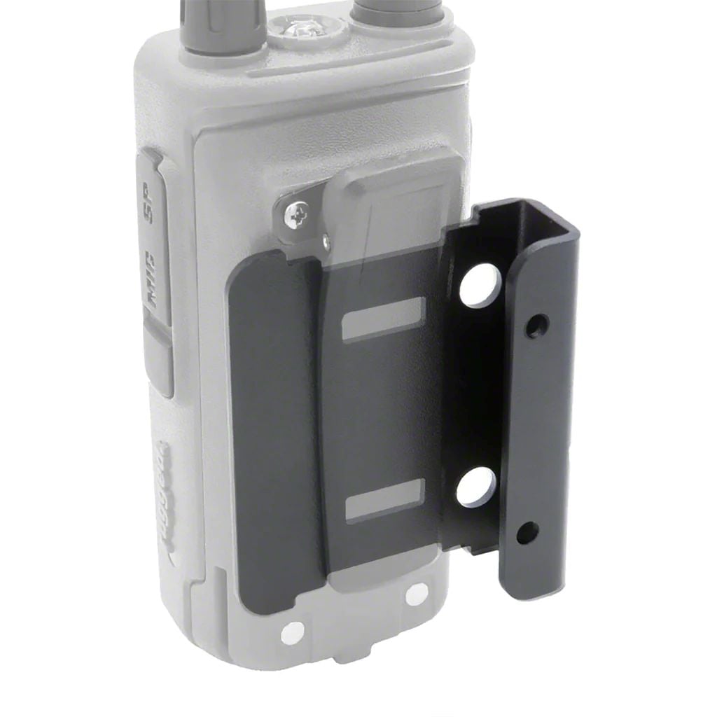 Secure Radio Mount. For off-road enthusiasts and professionals who rely on effective communication, the Rugged Radios Handheld Radio Mount for R1 / GMR2 / RDH16 / V3 / RH5R is an essential accessory. The versatility of the mount makes it an ideal choice for various communication needs, whether you're on a rugged trail or in a professional setting. Constructed with heavy-duty materials and finished with a black powder coat, this mount is built to last. It stands up to the rigors of off-road use, ensuring your radio stays in place even in the bumpiest conditions.