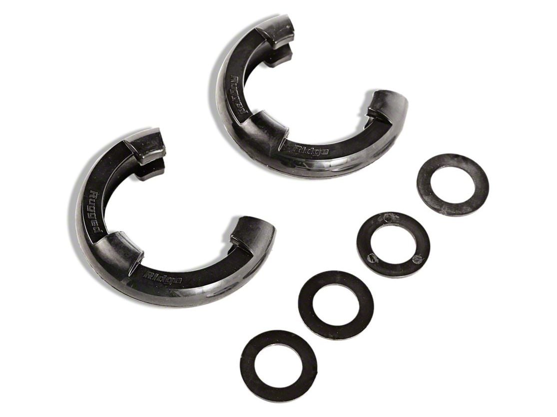 Durable Polyurethane Construction. To ensure longevity, these Rugged Ridge D-Shackle Isolators are built from long-lasting polyurethane. They’re also molded in black, to give your shackles a finished look. In addition, the kit comes with polyurethane washers to isolate the shackle pin from the mounting tab.