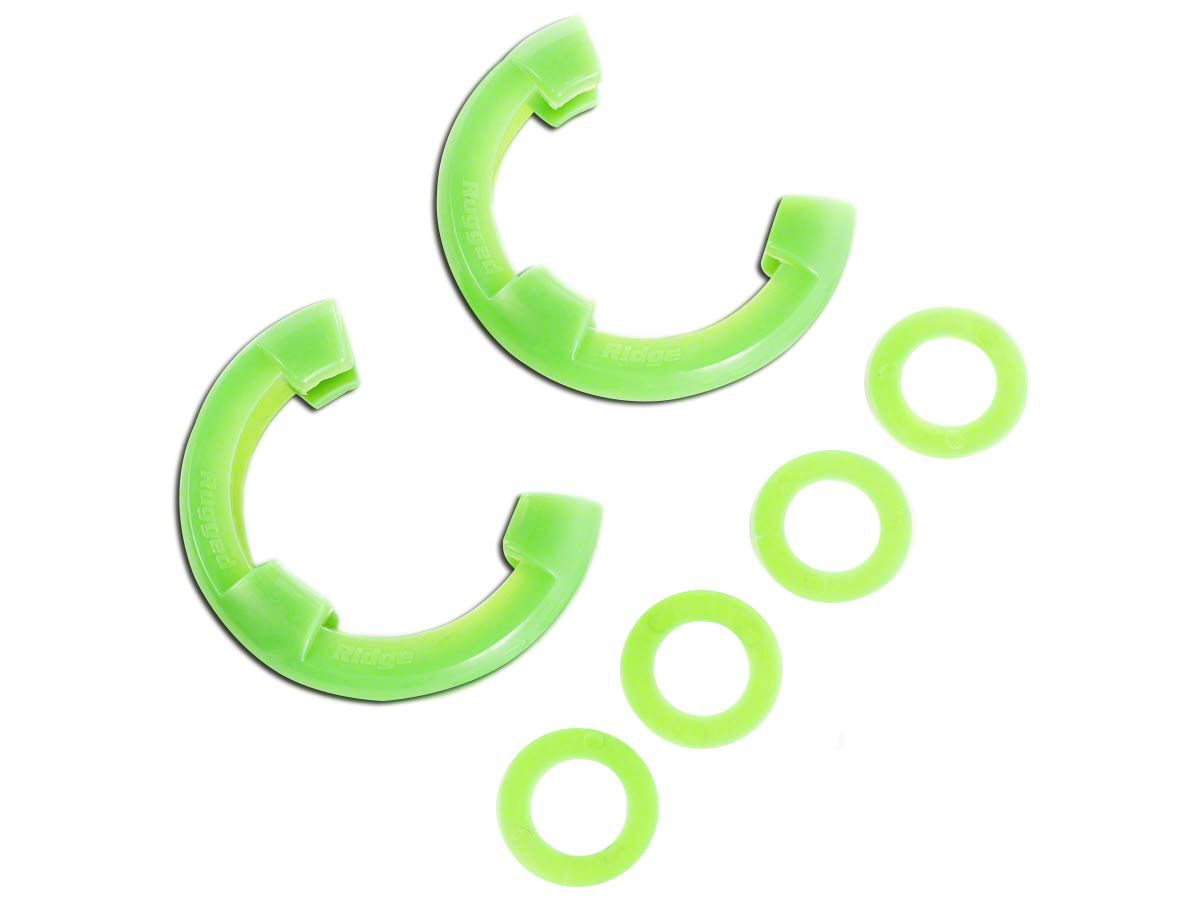 Stops the Banging and Clanging. D-ring shackles are an important part of your Sierra’s recovery equipment. Unfortunately, they can cause a lot of noise and possibly ruin your bumper’s finish. Rugged Ridge 3/4 in. Green D-Shackle Isolators can help prevent both issues by cushioning your D-ring shackle. It snaps on the D-shackle’s outer perimeter. And to prevent the D-shackle from clanging against the mount, it also comes with a set of washers for complete protection.