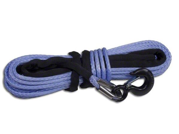 Equipped for Heavy Loads. Rated at a tensile strength of 19,930 pounds, the Rugged Ridge Synthetic Winch Rope will never kink or splinter like steel alternatives. This 94 foot by 3/8 inch synthetic winch line comes with a handy protective storage sleeve.