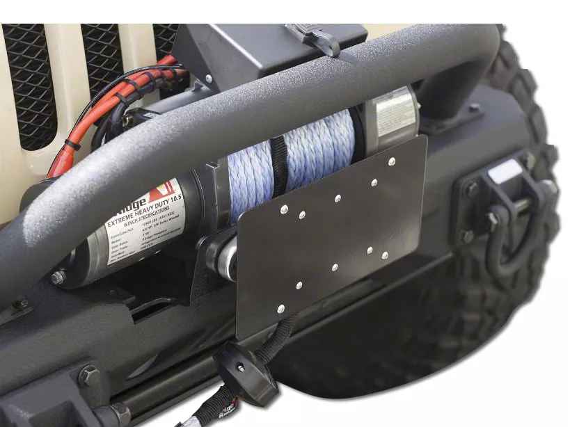 Application. The License Plate Mounting Bracket for Hawse Fairlead by Rugged Ridge fits all 1997-2026 Ford F-150s.