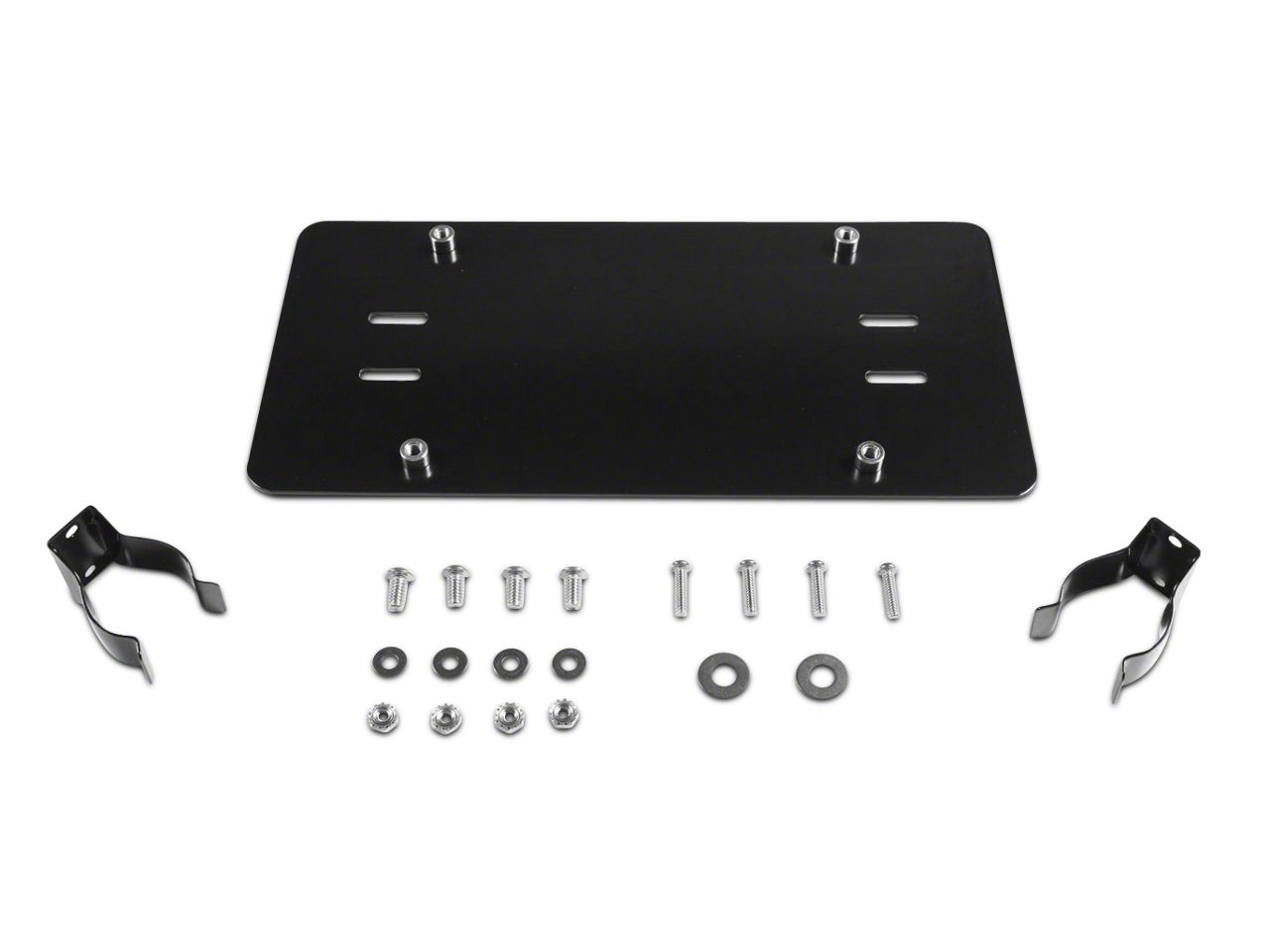 Functional Styling. You want to install functional equipment such as tubular bars, lights, and winches on the front of your off-roading rig, but you live in a state that requires a front license plate, too. Where is that plate going to go? Mount it directly onto your winch roller fairlead with Rugged Ridge's Roller Fairlead License Plate Mounting Bracket.
