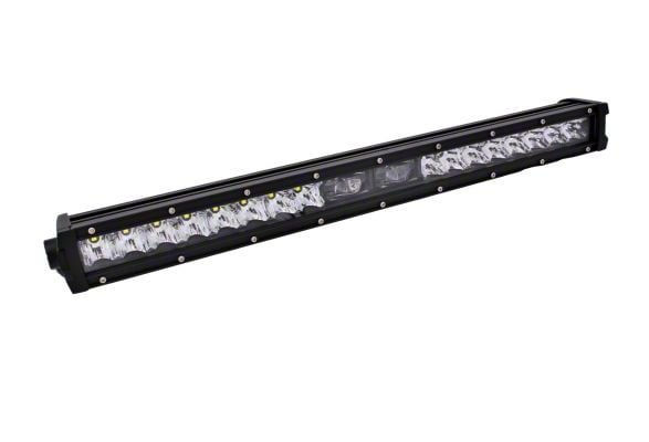 Description. The 20-Inch Single Row LED Light Bar from Rugged Ridge is a great way to equip your rig with night-cancelling illumination in a neat and efficient package. This single row night vision LED bar features a matte black cast aluminum housing that is IP68 waterproof rated for dependable performance in the harshest conditions. Highly efficient OSRAM LEDs create a wide flood output of 5,092 raw lumens ideal for off-road driving, yet with a minimal 4.04-amp consumption, you’ve got the power to run all your other accessories. Includes wiring harness, relay, rocker switch, #304 stainless brackets, and hardware.