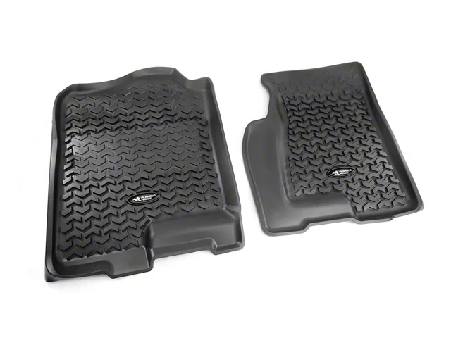 Keep the Truck’s Floor Clean. If you’re having a difficult time keeping your Chevrolet Silverado 1500’s carpets clean each time you come from outdoor activity, install these Black All-Terrain Front Floor Mats by Rugged Ridge. Their deeply sculpted, chevron-shaped channels help contain spills, dust, and other debris, preventing them from staining the floors as well as your footwear. Additionally, they boast stealthy black color to suit your vehicle's interior.