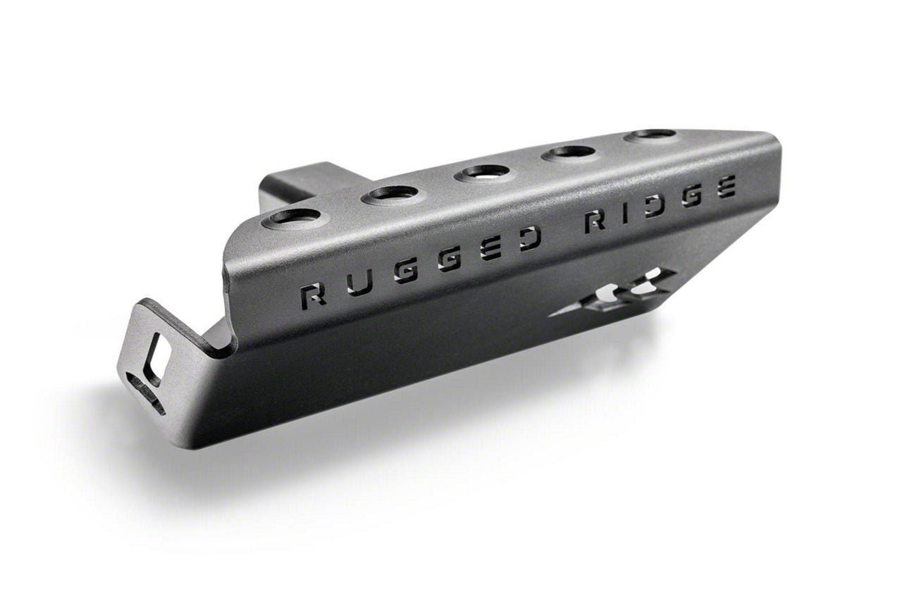 Tough Steel Gauge. Meet the Rugged Ridge Hitch Skid Plate - the perfect fusion of functionality and rugged design. Crafted from durable 3-gauge steel, it's built to withstand the toughest of terrains and challenges. This skid plate is specifically designed to be compatible with a 2-inch receiver hitch, ensuring a snug and secure fit.