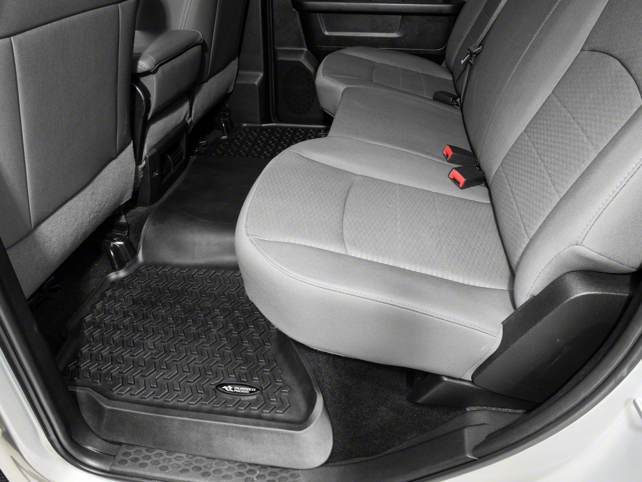 Application. This Rugged Ridge All-Terrain 2nd Row Floor Liner — Black is engineered for use in 2002-2018 RAM 1500 Quad Cab, Crew Cab Models.