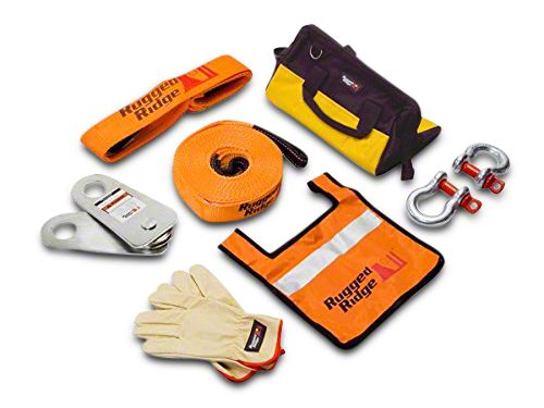All Set to Go. The Rugged Ridge Recovery Kit is ready to go whenever you need it. You’ll know exactly where to look for the items as they all store within the orange bag. Stay safe by using the included pair of leather gloves and line dampener. Everything in the bag is made tough to provide the dependability and strength you need in an emergency and comes backed by a 5-year limited warranty.