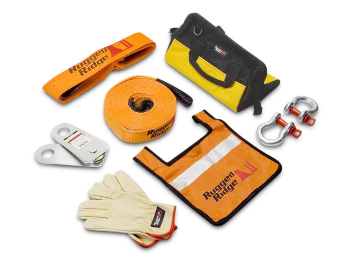 Great Kit for Getting Unstuck. The list of materials in this Rugged Ridge XHD Recovery Gear Kit is an excellent set of choices for a typical recovery operation. It includes everything you need to get back on the trail and make another attempt. The orange color is great for finding your gear quickly even in the early mornings and evenings.