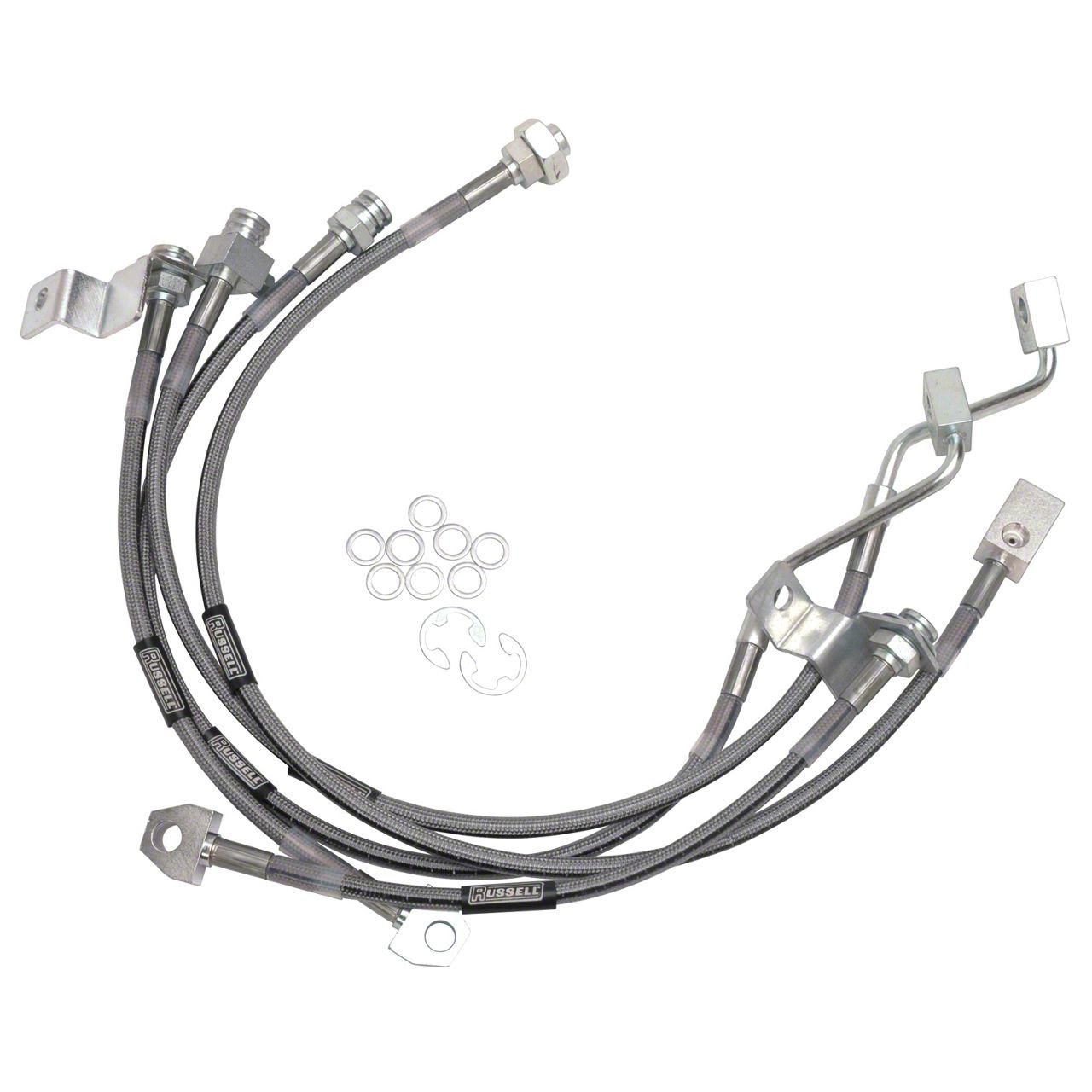 Enhanced Braking Control and Durability. The Russell Stainless Steel Braided Brake Line Kit is designed to provide improved braking response and reduced line expansion for vehicles with 4 to 5.5-inch lifts. Ideal for off-road and high-performance driving, this brake line kit ensures optimal brake line length and maintains consistent braking power for your lifted 1999-2004 F-350 Super Duty.