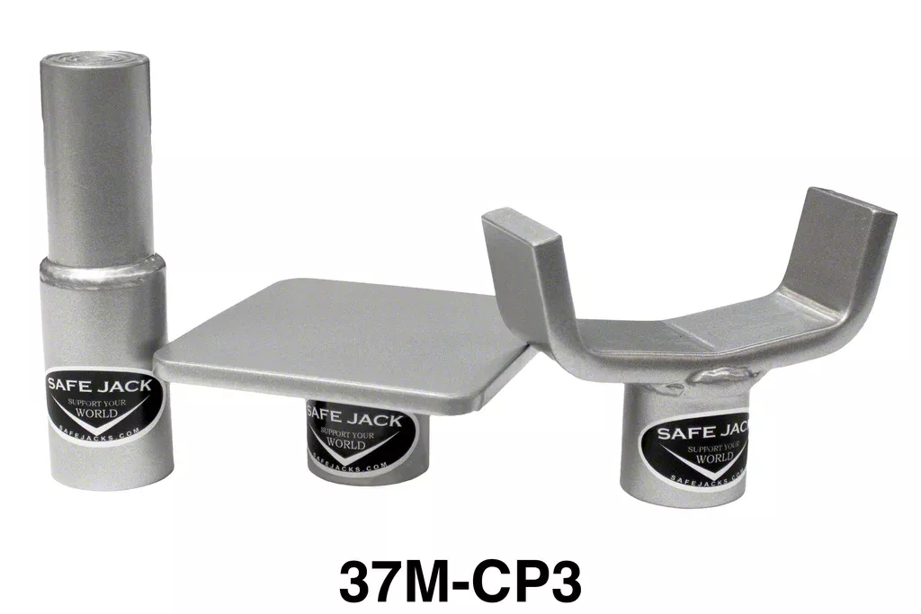 The CP3 is a collection of 3 very useful 6-ton adapters; The 3-inch Bottle Jack Extension, the 3-inch Universal Lift Pad, and the Flat Pad, designed to make your lifting jobs easier and safer. Combine these with an Extension Screw Collar tailored to your jack's specifications, or with one of our approved bottle jacks and premade Extension Screw Collars, and you can start lifting with Safe Jack right away! Additional Jack Extensions and Lift Pads can be added to expand your capability as needed.