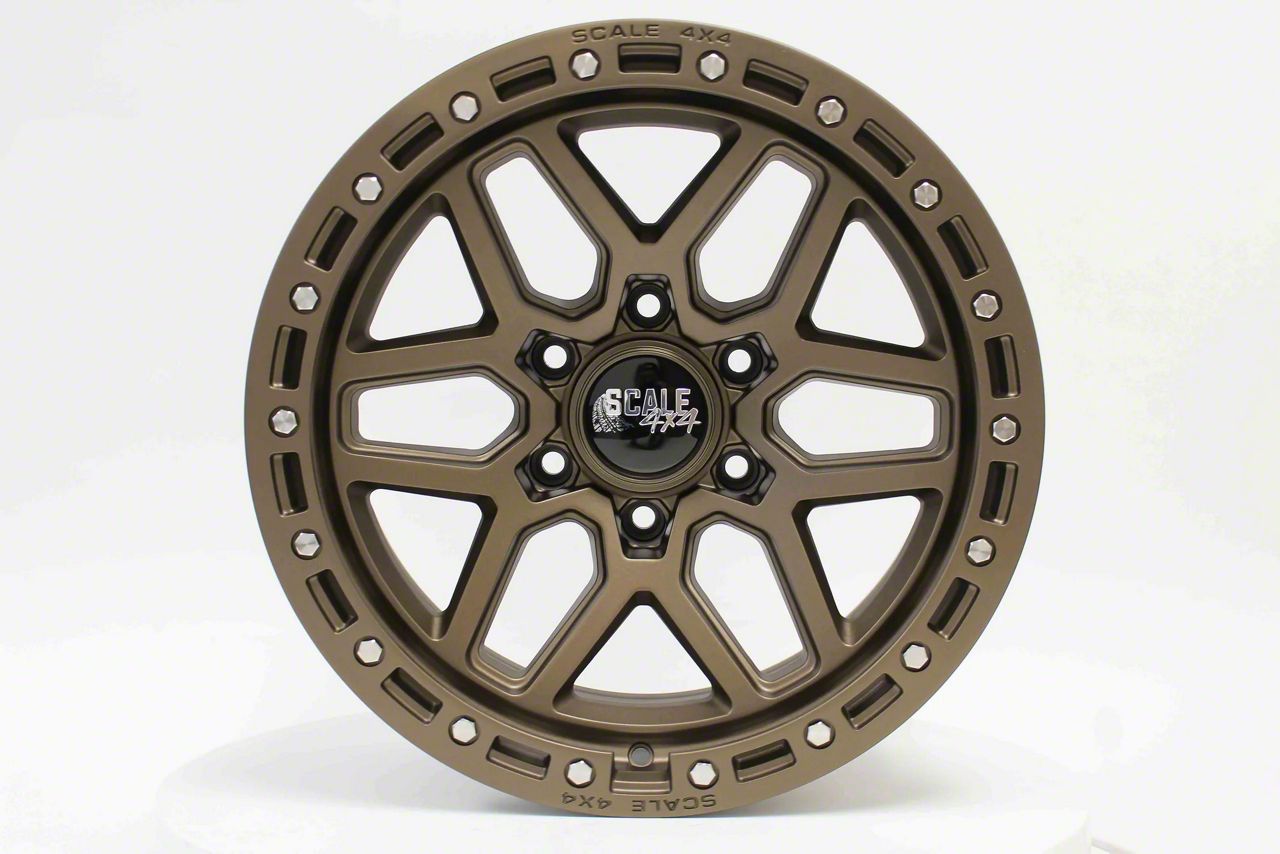 Scale 4x4 Wheels S02 Matte Bronze 6-Lug Wheel; 17x8.5; -10mm Offset delivers a bold and modern aesthetic, ideal for enthusiasts seeking a refined yet assertive look for their vehicle. With its standout design and distinct finish, this wheel enhances the vehicle's visual stance and street presence. The precise craftsmanship and premium aluminum build reflect Scale 4x4 Wheels' dedication to quality and distinctive design. Whether parked or in motion, this wheel draws attention with its clean, aggressive styling.