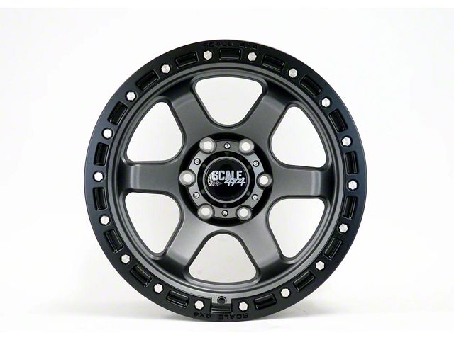 Scale 4x4 Wheels S03 Matte Gunmetal with Black Beadlock 6-Lug Wheel; 17x9; -25mm Offset delivers a bold and modern aesthetic, ideal for enthusiasts seeking a refined yet assertive look for their vehicle. With its standout design and distinct finish, this wheel enhances the vehicle's visual stance and street presence. The precise craftsmanship and premium aluminum build reflect Scale 4x4 Wheels' dedication to quality and distinctive design. Whether parked or in motion, this wheel draws attention with its clean, aggressive styling.