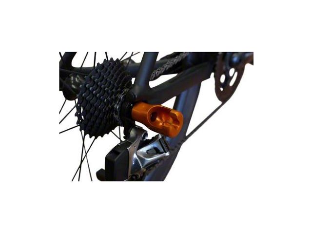 The SeaSucker Hogg bolts onto the rear wheel using the provided anodized aluminium Hogg nut. When its time to transport your bike just screw on the Hogg body. Plan on transporting many bikes, just purchase the skewer nut on its own rather than removing it and re-installing it from bike to bike. The Hogg Nut will be in stock very shortly. The kit includes an anti-rotation strap to prevent the front wheel from spinning whilst being transported.