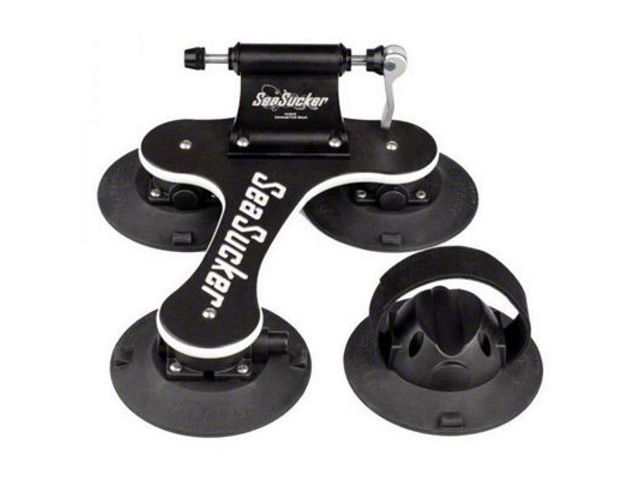 Specifications:Holds 1 bicycle – up to 45 lbs. Made for roof top, trunk or hatchback attachment. Attaches to metal, glass or fiberglass surfaces. 1/2” thick high-density polyethylene (HDPE) body for strength and durability. One heavy-duty fork mount for 9mm dropouts. Three 6? SeaSucker vacuum cups on body (210 lb. pull-strength rated each). Approx. 15” x 13” footprint. Approx. 6 lbs. What’s in the box: Talon 1-bike rack with Huske Fork mount and 9x100mm QR. Rear Wheel Strap. 5g Lube Tube for vacuum pump maintenance. Spare vacuum pump - Crank Arm Strap