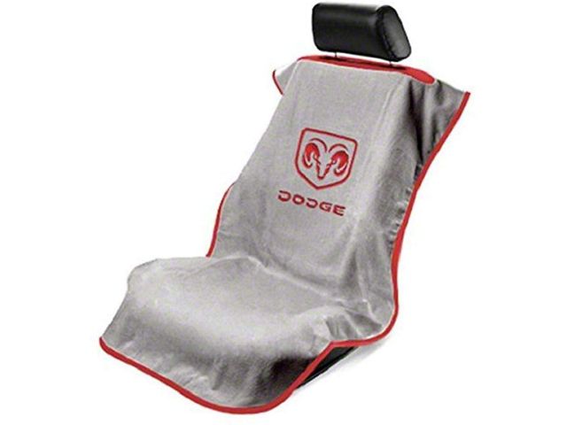Heavy-Duty Cotton Terry. This seat towel is made from tear, wrinkle, and fade-resistant cotton terry with a gray velour finish. Although the fabric is soft, it’s made to handle strenuous conditions. The red Dodge RAM logo is printed using modern technology for extra durability.