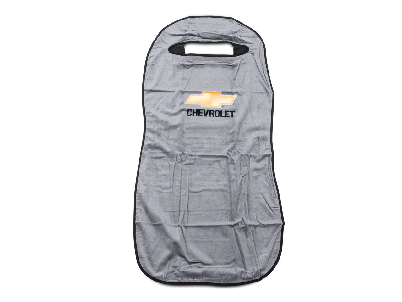 Durable Construction. Made with 100% cotton/terry velour, you won't have to worry if your seat protector gets soiled. You can just pop into the washing machine and it'll come out clean and ready for use without hassle. Not only is it machine washable, but it also lets you show your Chevy pride with the Chevy logo printed in gold against the gray backdrop.