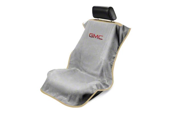 Built to Last. This gray GMC Logo Seat Protector is made from 100 percent cotton/terry velour and that accomplishes two things. It gives you tough protection to keep your stock seats pristine and it feels comfortable against your skin.