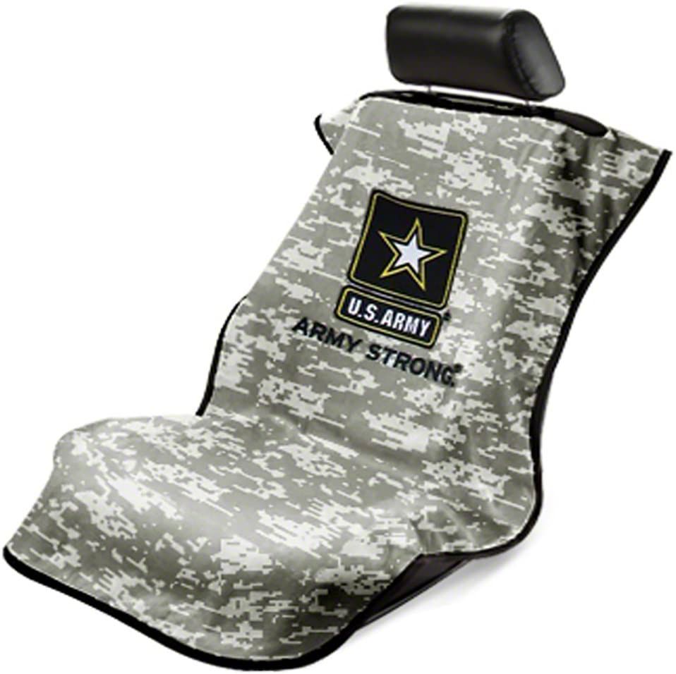 Added Style and Functionality. Keep your seat clean and protected while adding some style to your interior with this Seat Towel with US Army Logo. The plush soft material is comfortable to sit on, and the towel will protect your seat from pet fur, sweat, stains, and dirt. It`s a great way to show your allegiance while keeping your vehicle looking sharp with its camouflage design.
