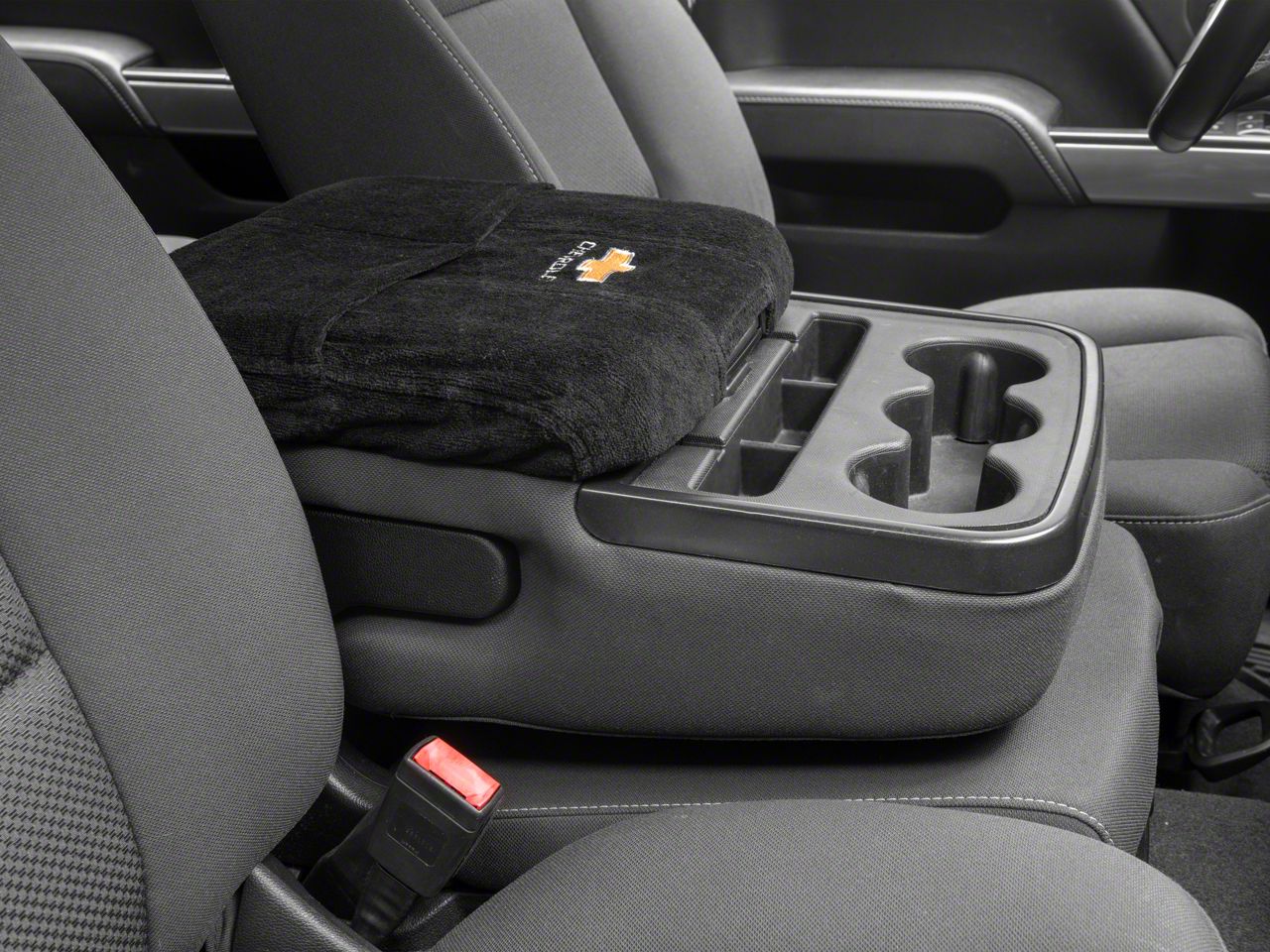 Elbow Comfort. A Center Console Cover with Chevrolet Bowtie Logo; Black provides a wonderful cushion for your elbow and the center console lid is adequately protected. It also proudly displays your Chevrolet loyalty in your Silverado 3500 HD.