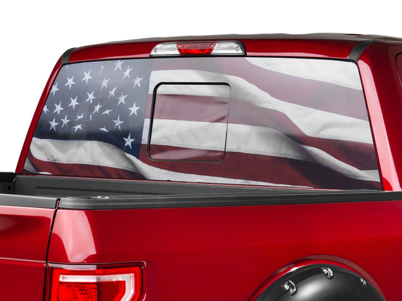 Patriotic Styling. If you're looking for a way to show your love for the USA, this Rear Window Decal is for you. Featuring a full color American Flag, this Perforated Rear Window Decal will proudly show off your patriotism. The flag graphic is visible from the outside of your vehicle, but you'll still be able to clearly see out the rear window when sitting inside.