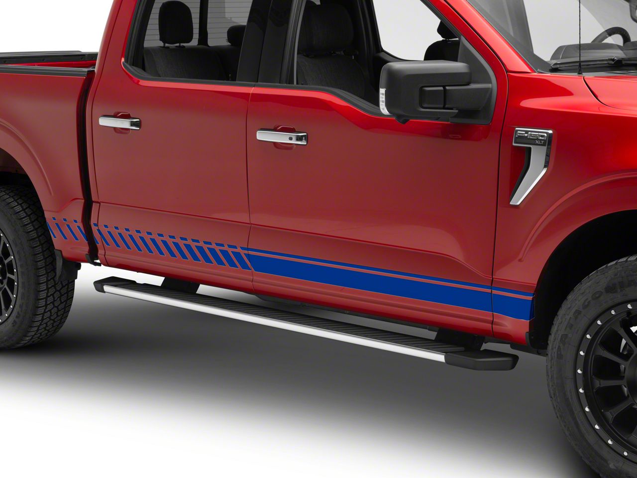 Application. These SEC10 Dashed Rocker Stripes; Blue feature a universal designed and will fit all makes and models. Driver and passenger Side Included.